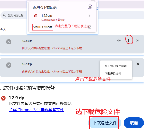 浏览器已屏蔽危险的下载内容
